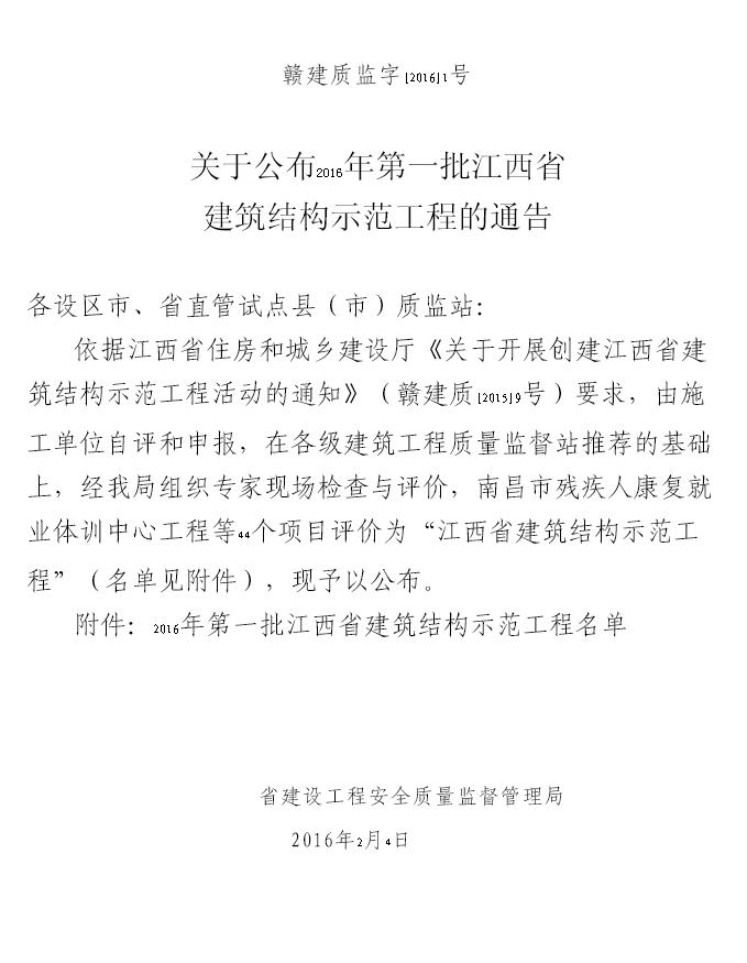 由南昌市第二建筑工程公司承建的郭家莊B地塊棚戶區(qū)改造項(xiàng)目(安置房)5#、6#、7#、8#樓及地下車庫(kù)工程獲“2016年第一批江西省建筑結(jié)構(gòu)示范工程” [摘自贛建質(zhì)監(jiān)字[2016]1號(hào)]。